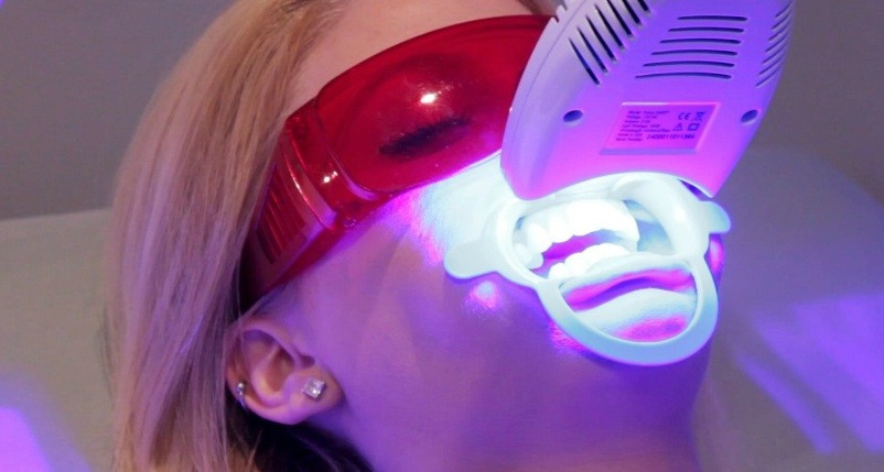 Стоматолог захищає ясна та губи спеціальним гелем, а також може використовувати окуляри для захисту очей від світла лампи.
